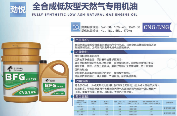 劲悦全合成低灰型天然气专用油CNG.LNG